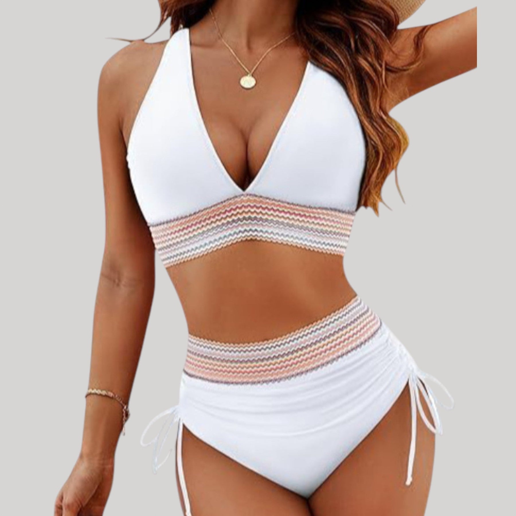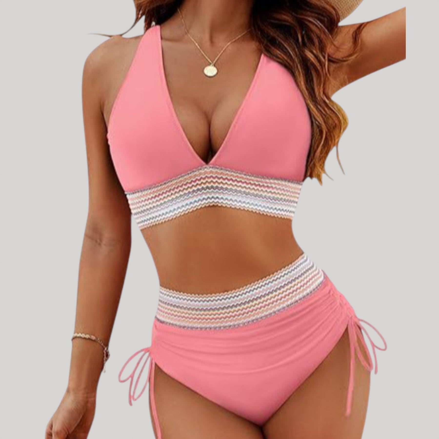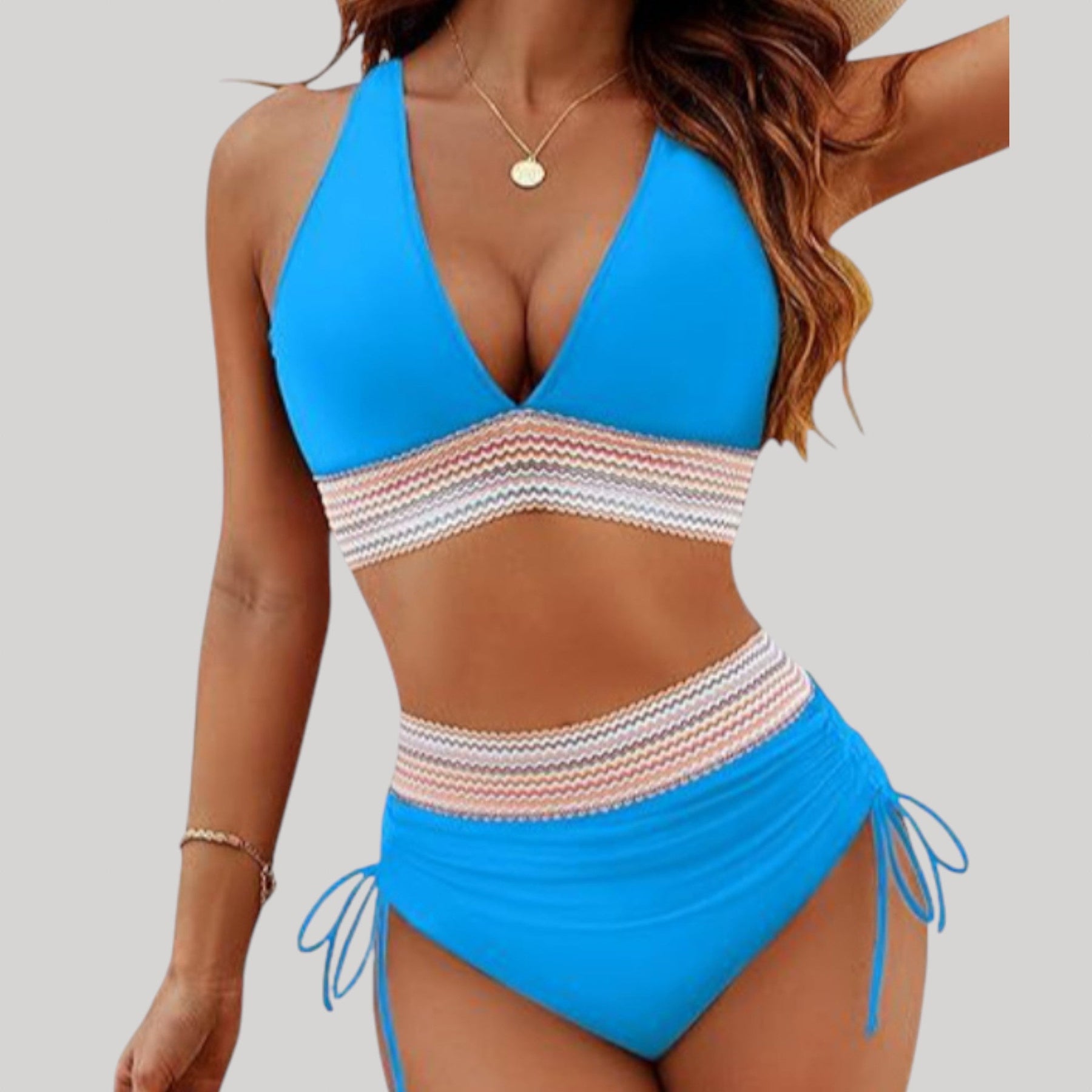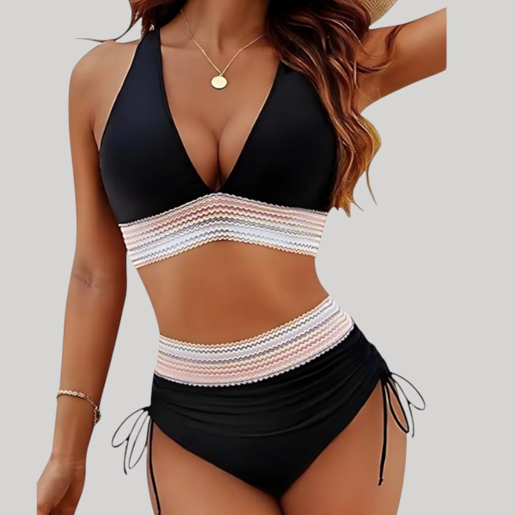 • Бикини с висока талия: Осигуряват комфорт и подчертаваща фигурата визия с регулируеми странични връзки.