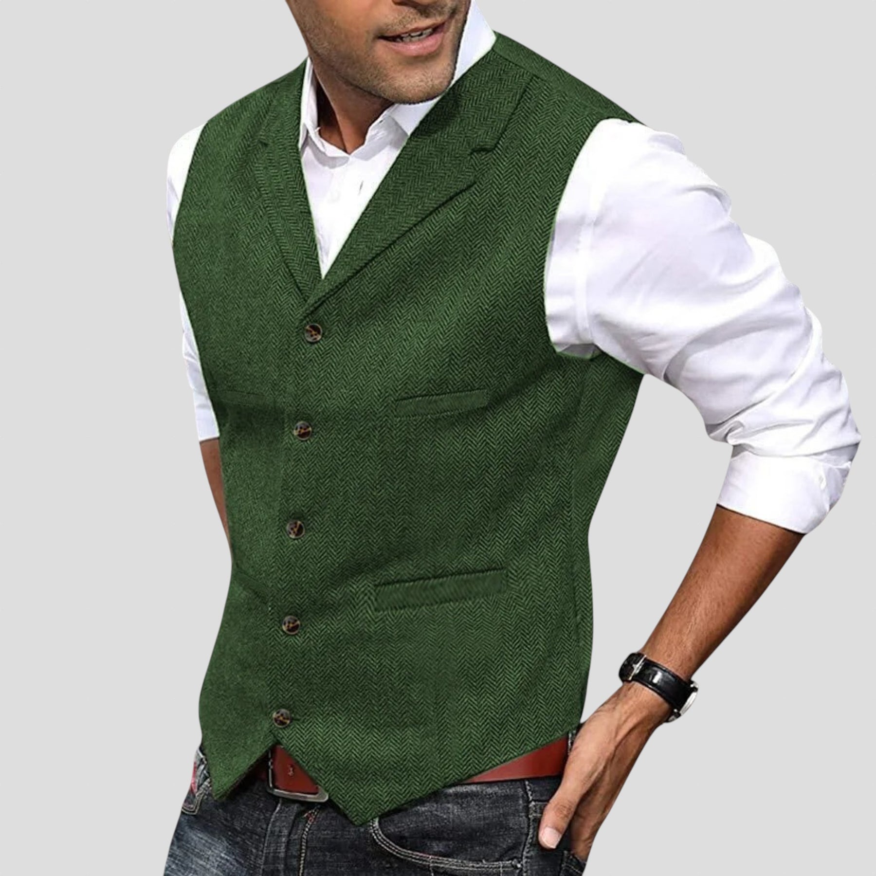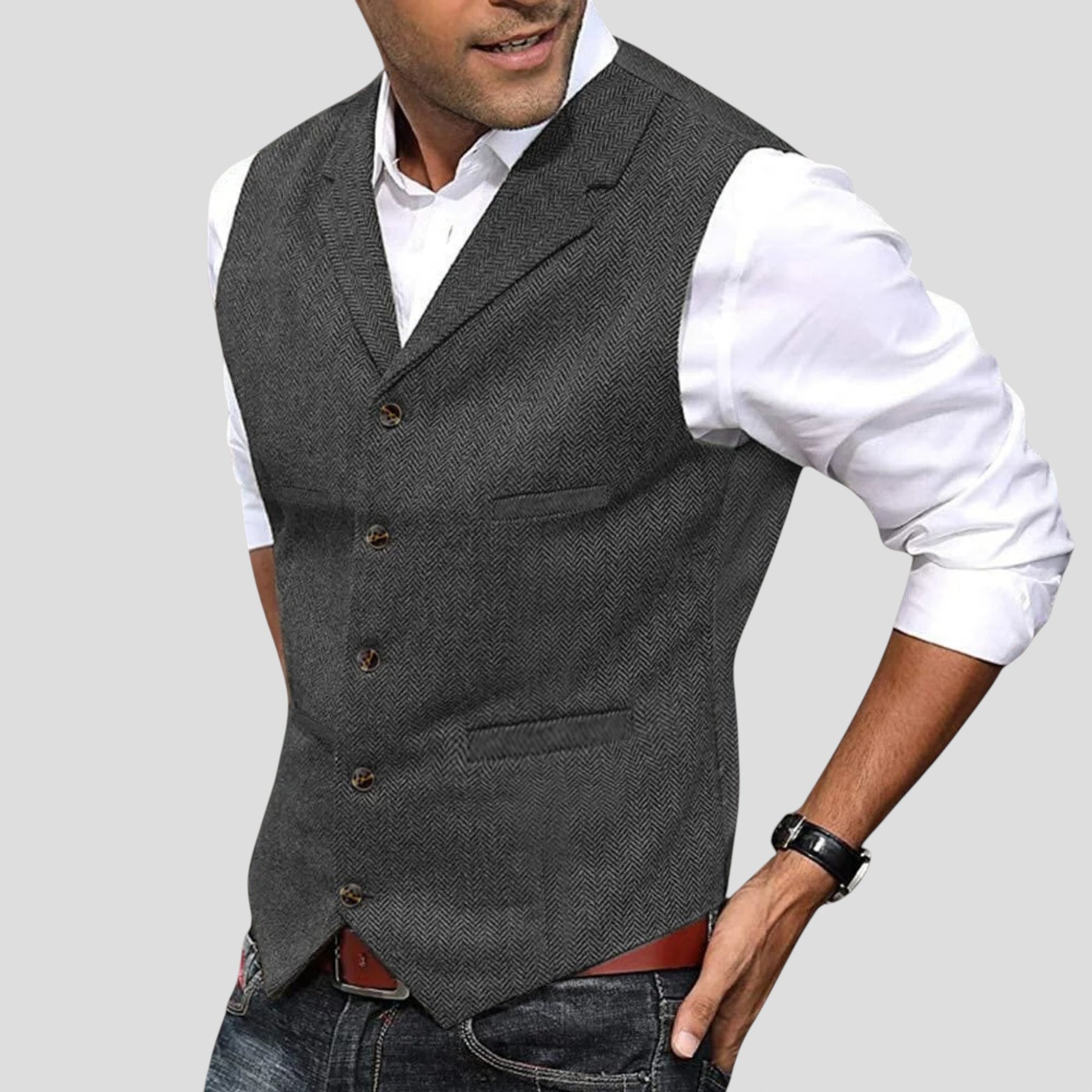 Аристократичният елек е върхът на изискаността и стила. Проектиран за съвременния джентълмен, той е перфектен за подчертаване на всяко официално облекло с елегантната и персонализирана кройка.